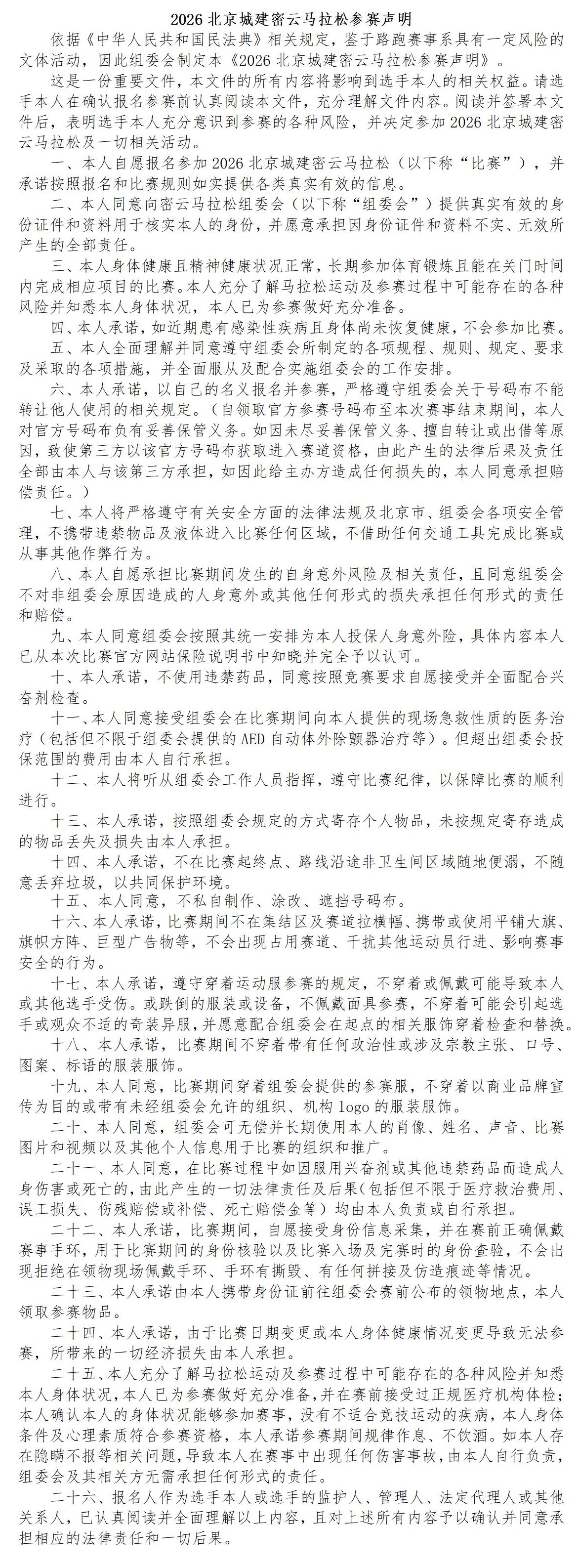 马拉松项目参赛年龄限20周岁及以上(2006年1月1日前出生,含当日);