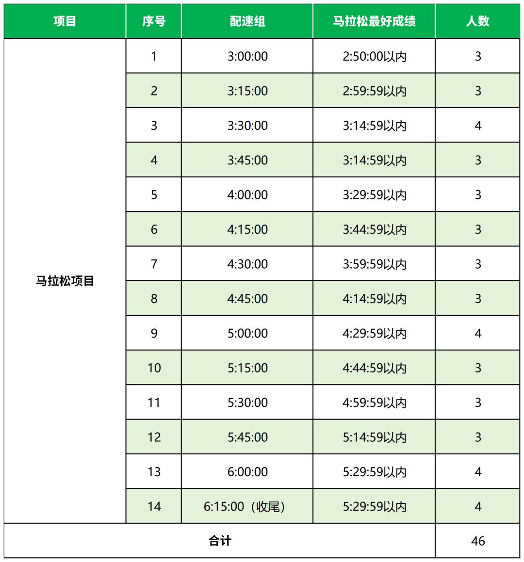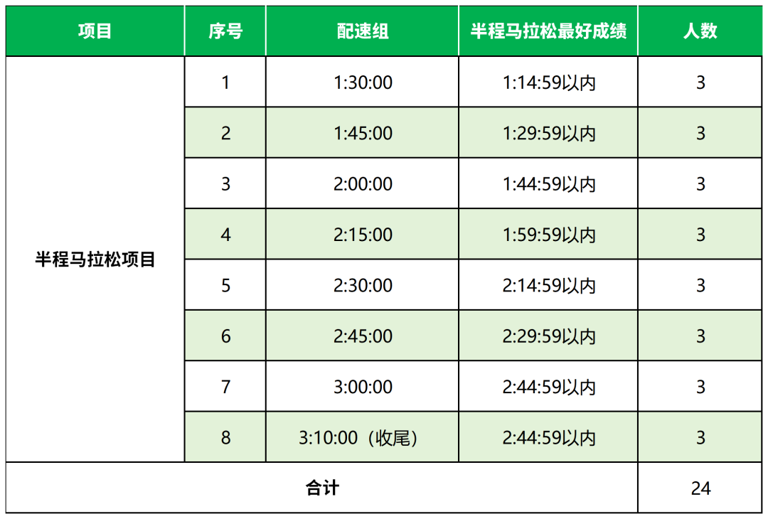 4.原则上马拉松/半程马拉松成绩要高于申请的组别成绩15-30分钟(马拉松项目300时段酌情考虑)。(申请时须提供2023年至今,至少2次达到该成绩段含区间分段成绩且为中国田协备案赛事的完赛成绩证明);